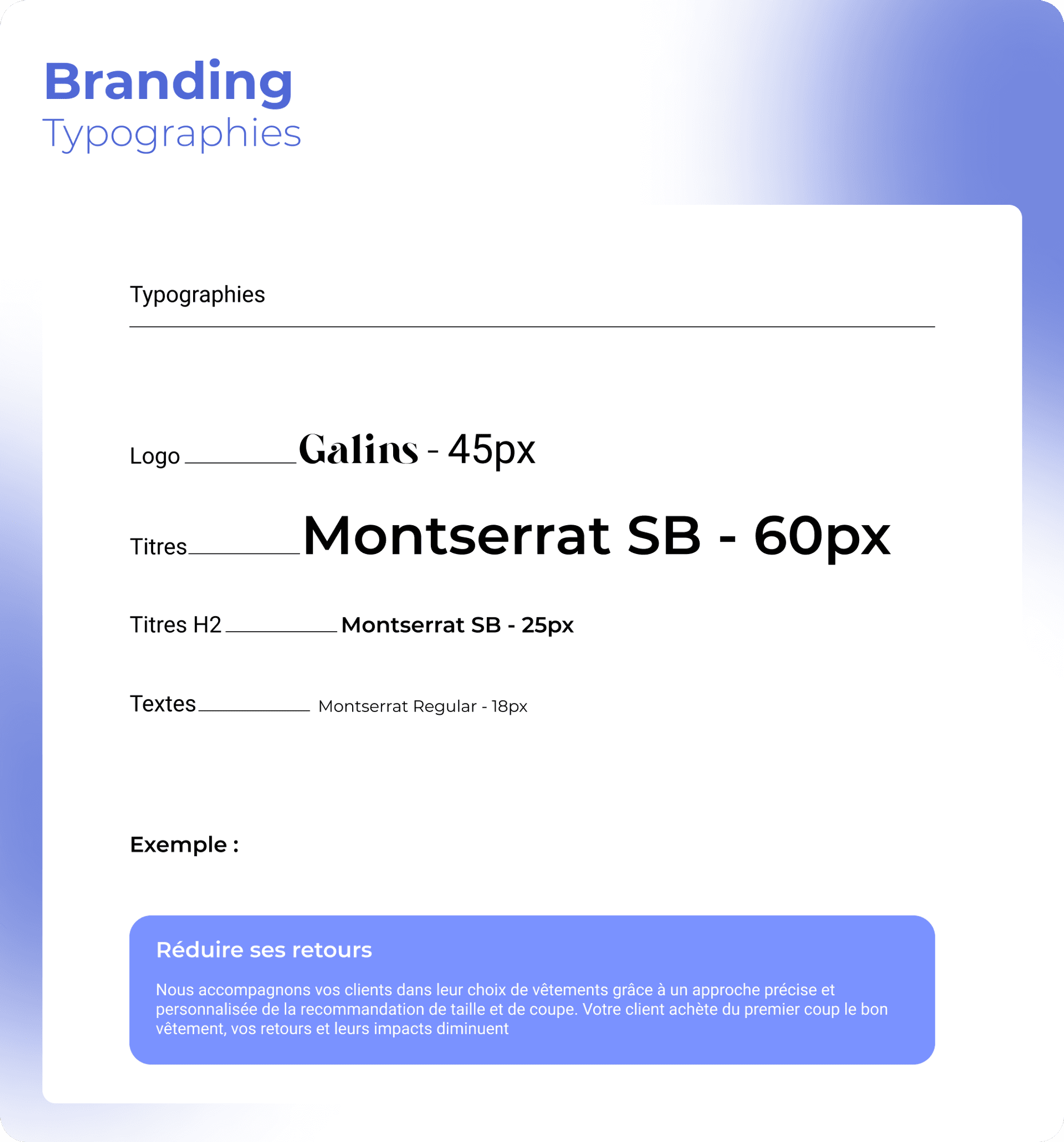 Pour les titres nous choisissons une Montserrat en Semi-Bold. Cette typographie a été conçue avec une grande attention portée à la lisibilité, en particulier sur les écrans numériques. Ses formes claires et simples rendent le texte facile à lire, même à de petites tailles. Montserrat est appréciée pour son apparence contemporaine et élégante. Elle présente des formes géométriques équilibrées et des lignes épurées, ce qui lui confère un aspect moderne et professionnel.