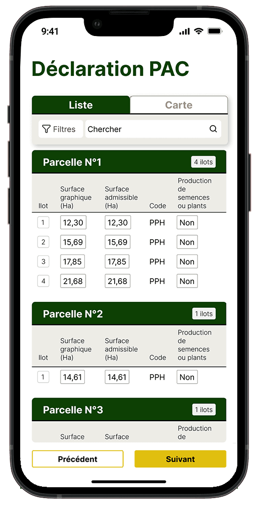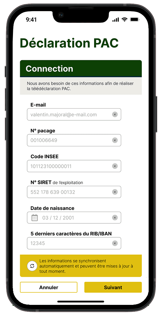 Comme l'application Géion stocke toutes les données liées à l'exploitation agricole, il est rapide et efficace de pré-remplir automatiquement les informations nécessaires à la déclaration. L'utilisateur n'a alors qu'à vérifier et valider ces données pour compléter la déclaration.