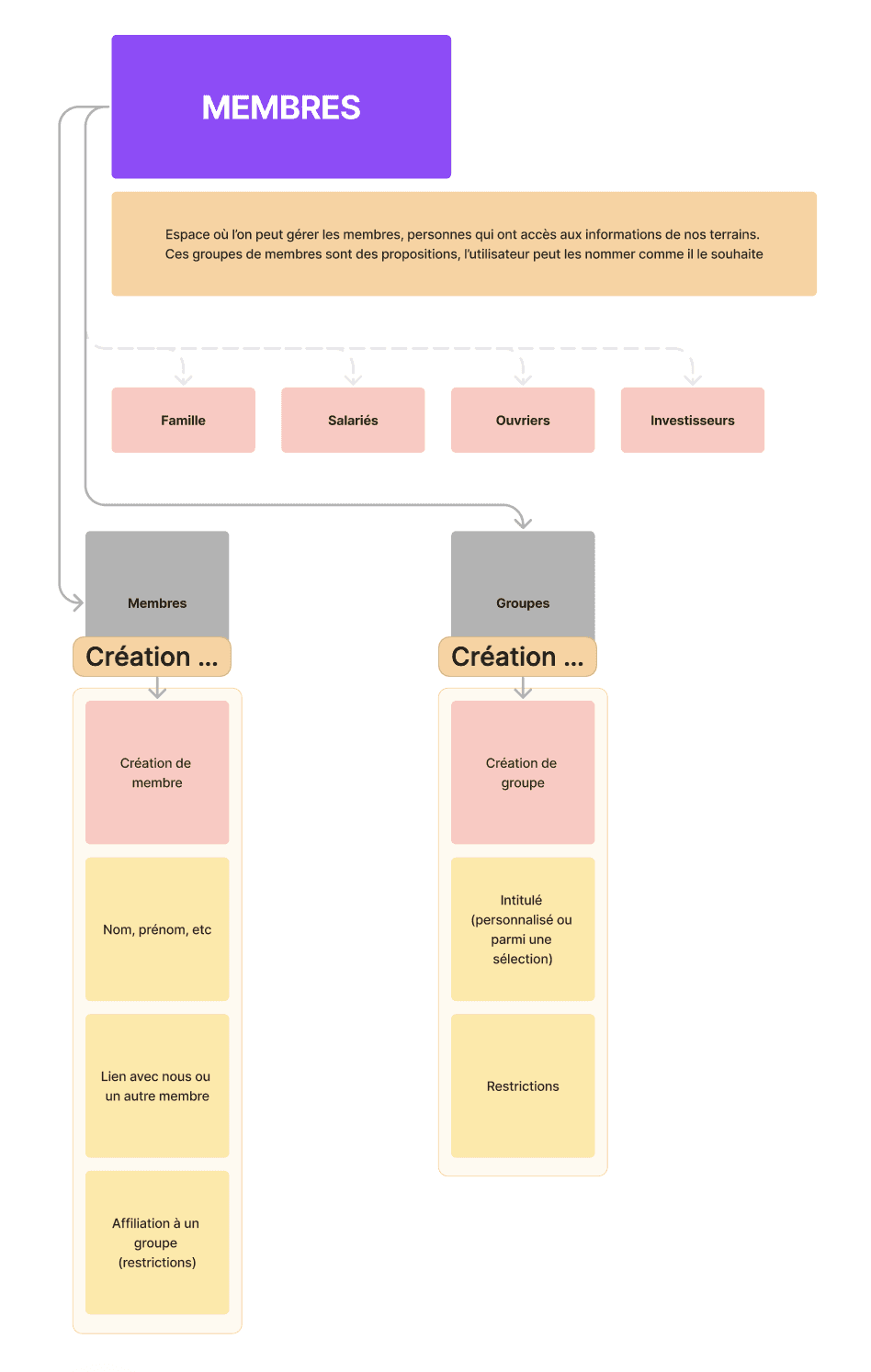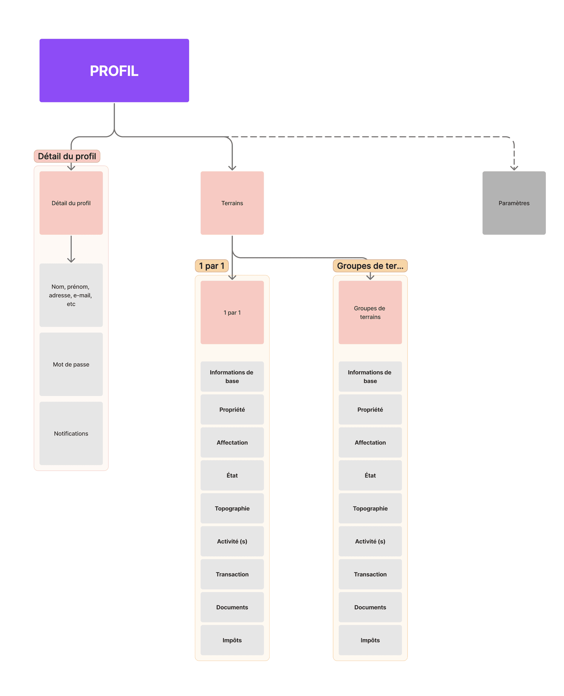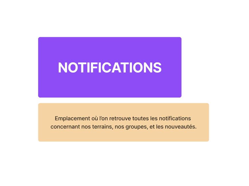 Voici les données que nous retrouvons pour chaque section. Nous avions en premier lieu la section "Terrains", puis les sections "membres", "nouveautés", "notifications" et "profil".