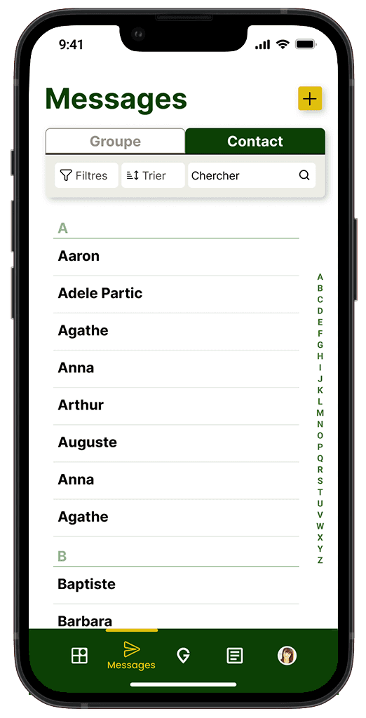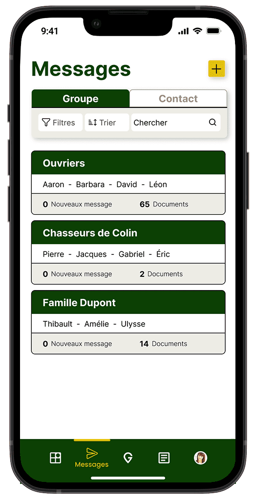 De plus, il est possible de créer des groupes de contacts, ce qui est particulièrement utile pour rassembler des personnes liées entre elles. Par exemple, cela permet d'informer simultanément toutes les personnes travaillant sur un même terrain.