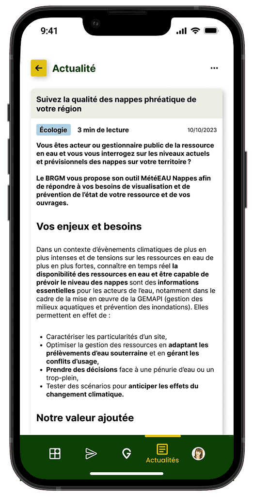 La section actualité à pour but de tenir au courant les gérants d'exploitation agricole des nouveautés concernant leur milieu.