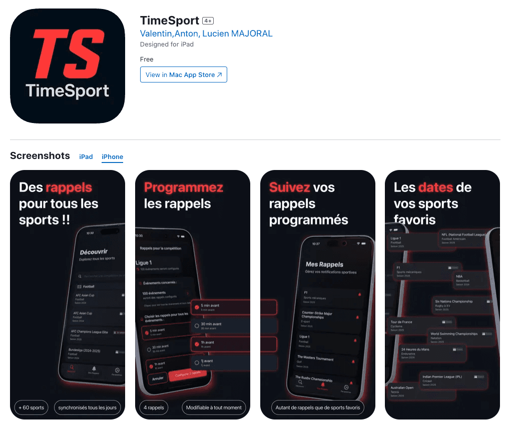 Grâce à une interface intuitive, l’utilisateur peut consulter les dates, horaires et détails des matchs ou épreuves, recevoir des rappels personnalisés, et ne jamais manquer un événement important.